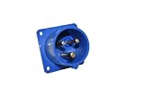 This Interpower 84432223 International Electrotechnical Commission (IEC) 60309 blue, two-pole, high-power inlet has three contacts, a six-hour (180 degree) ground pin, and is suitable for high-current, single-phase electrical applications. It has an international current and voltage rating of 32 amps at 220 to 250 VAC, and a North American rating of 30 amps at 250 VAC. Its housing is made of blue polyamide 6 for strength and thermal insulation, and has an Ingress Protection (IP) rating of IP44 for protection against splashing water and foreign objects larger than 1 mm. It has an operating temperature range of -25 to +80 degrees C and an ambient temperature range of -25 to +40 degrees C. The inlet has three contacts made of a copper-zinc all