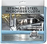 Microfiber Cleaning Cloths for Polishing Stainless Steel Kitchen Appliances & Streak Free Glass 3pk