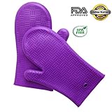 Oven Mitts Gloves, Kitchen Heat Resistant Silicone BBQ Grilling Gloves, for Cooking, Baking, Barbecue, Smoking & Potholder (Purple)